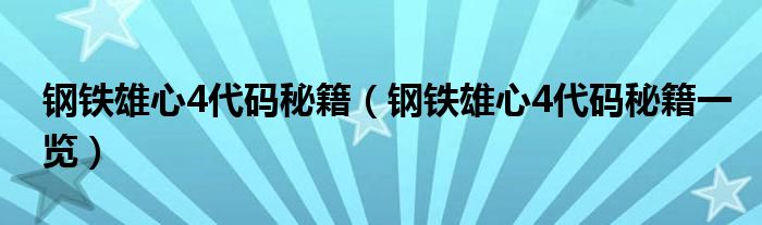 钢铁雄心4代码秘籍(钢铁雄心4代码秘籍一览)