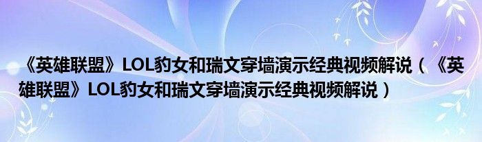 《英雄联盟》LOL豹女和瑞文穿墙演示经典视频解说(《英雄联盟》LOL豹女和瑞文穿墙演示经典视频解说)