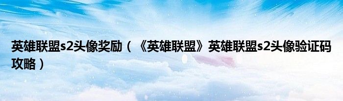 英雄联盟s2头像奖励(《英雄联盟》英雄联盟s2头像验证码攻略)