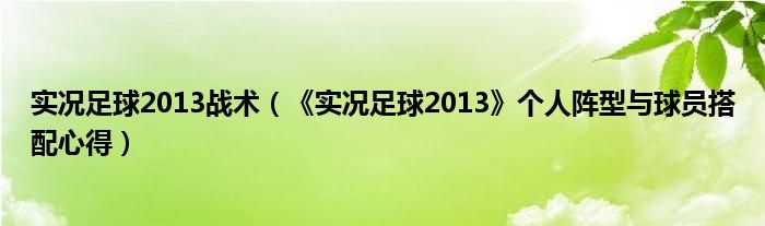 实况足球2013战术(《实况足球2013》个人阵型与球员搭配心得)
