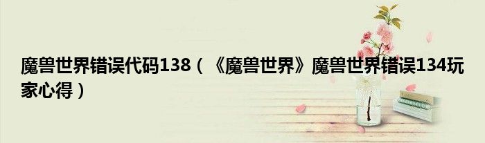 魔兽世界错误代码138(《魔兽世界》魔兽世界错误134玩家心得)