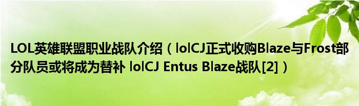 LOL英雄联盟职业战队介绍(lolCJ正式收购Blaze与Frost部分队员或将成为替补 lolCJ Entus Blaze战队[2])