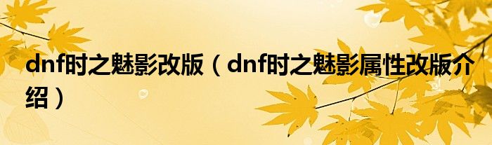 大家好,太太来为大家解答以上问题。dnf时之魅影改版,dnf时之魅影属性改版介绍很多人还不知道,现在让我们一起来看看吧!