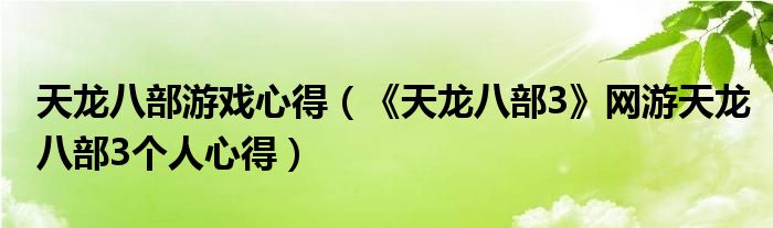 天龙八部游戏心得(《天龙八部3》网游天龙八部3个人心得)