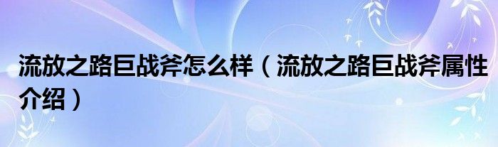 导读 大家好,太太来为大家解答以上问题。流放之路巨战斧怎么样,流放之路巨战斧属性介绍很多人还不知道,现在让我们一起来看看吧!1、流放之路