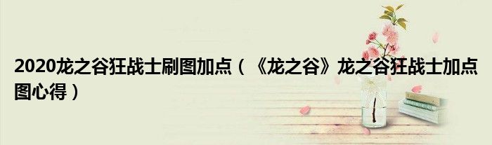 2020龙之谷狂战士刷图加点(《龙之谷》龙之谷狂战士加点图心得)