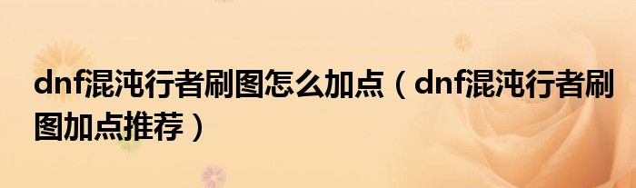 dnf混沌行者刷图怎么加点(dnf混沌行者刷图加点推荐)