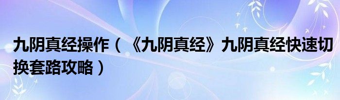 九阴真经操作(《九阴真经》九阴真经快速切换套路攻略)