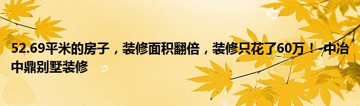 大家好,今天乐乐来为大家解答以上问题。52.69平米的房子,装修面积翻倍,装修只花了60万!-中冶中鼎别墅装修很多人还不知道,现在让我们一起来看看吧!