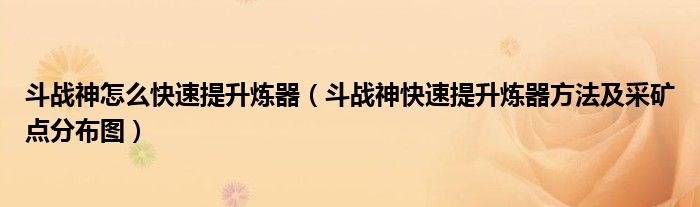 大家好,太太来为大家解答以上问题。斗战神怎么快速提升炼器,斗战神快速提升炼器方法及采矿点分布图很多人还不知道,现在让我们一起来看看吧!
