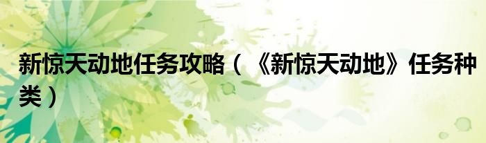 新惊天动地任务攻略(《新惊天动地》任务种类)