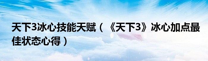 天下3冰心技能天赋(《天下3》冰心加点最佳状态心得)