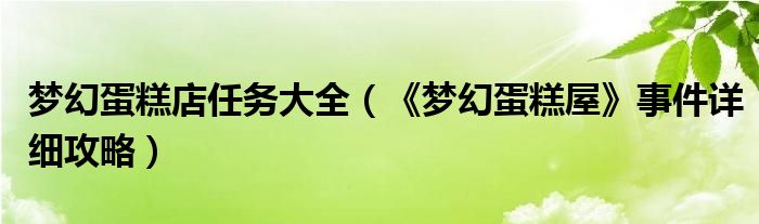 梦幻蛋糕店任务大全(《梦幻蛋糕屋》事件详细攻略)