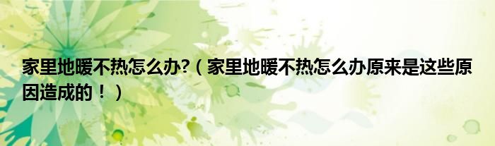 家里地暖不热怎么办?(家里地暖不热怎么办原来是这些原因造成的!)