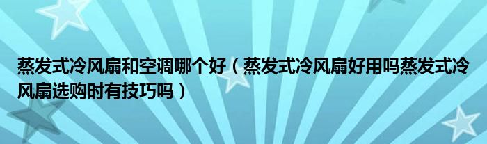 蒸发式冷风扇和空调哪个好(蒸发式冷风扇好用吗蒸发式冷风扇选购时有技巧吗)