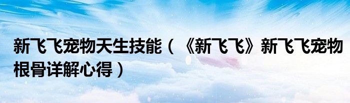 新飞飞宠物天生技能(《新飞飞》新飞飞宠物根骨详解心得)