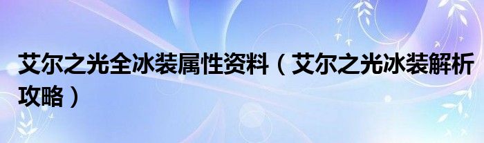 艾尔之光全冰装属性资料(艾尔之光冰装解析攻略)