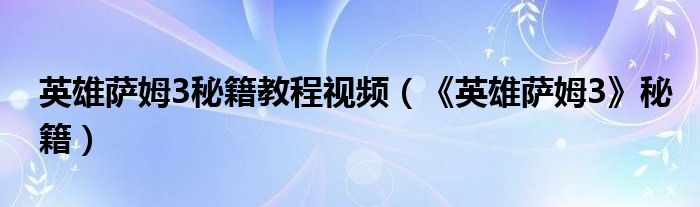 英雄萨姆3秘籍教程视频(《英雄萨姆3》秘籍)