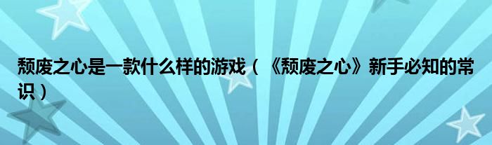 颓废之心是一款什么样的游戏(《颓废之心》新手必知的常识)