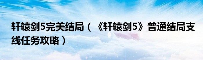 轩辕剑5完美结局(《轩辕剑5》普通结局支线任务攻略)