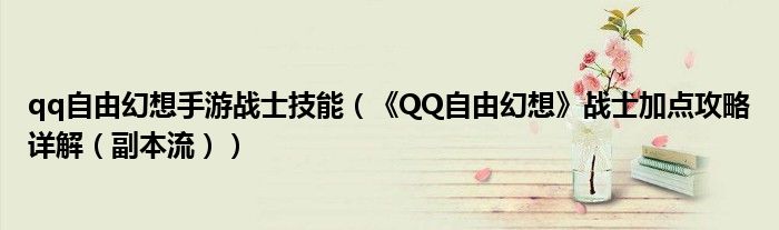 qq自由幻想手游战士技能(《QQ自由幻想》战士加点攻略详解(副本流))