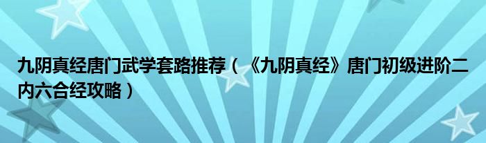 大家好,太太来为大家解答以上问题。九阴真经唐门武学套路推荐,《九阴真经》唐门初级进阶二内六合经攻略很多人还不知道,现在让我们一起来看看吧!