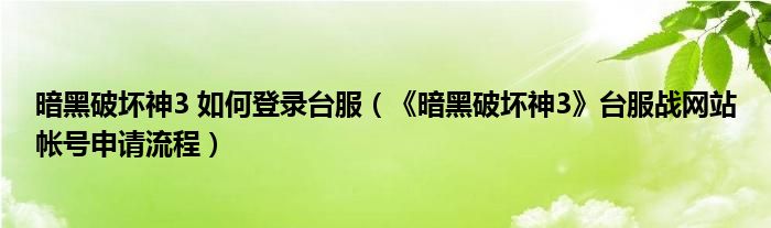 导读 大家好,太太来为大家解答以上问题。暗黑破坏神3 如何登录台服,《暗黑破坏神3》台服战网站帐号申请流程很多人还不知道,现在让我们一起来