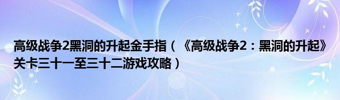 高级战争2黑洞的升起金手指(《高级战争2:黑洞的升起》关卡三十一至三十二游戏攻略)
