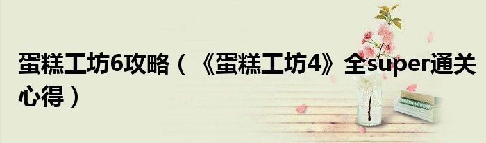 蛋糕工坊6攻略(《蛋糕工坊4》全super通关心得)