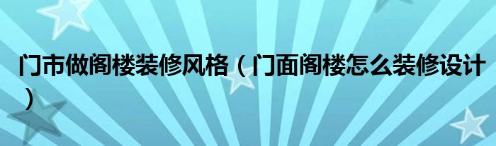 门市做阁楼装修风格(门面阁楼怎么装修设计)