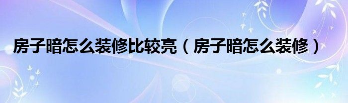 房子暗怎么装修比较亮(房子暗怎么装修)