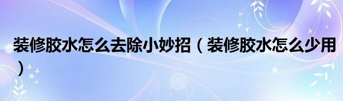 装修胶水怎么去除小妙招(装修胶水怎么少用)