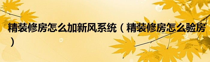 精装修房怎么加新风系统(精装修房怎么验房)