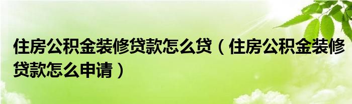 住房公积金装修贷款怎么贷(住房公积金装修贷款怎么申请)