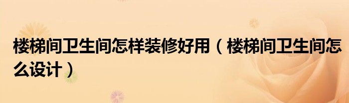 楼梯间卫生间怎样装修好用(楼梯间卫生间怎么设计)