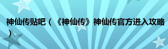 神仙传贴吧(《神仙传》神仙传官方进入攻略)