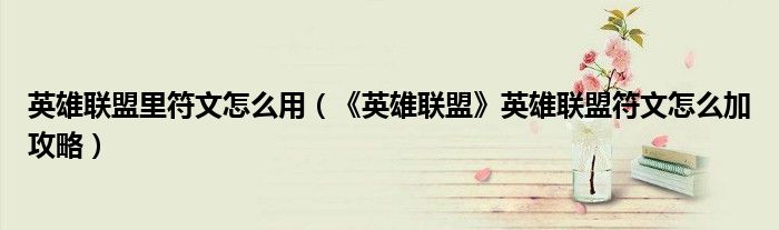 英雄联盟里符文怎么用(《英雄联盟》英雄联盟符文怎么加攻略)
