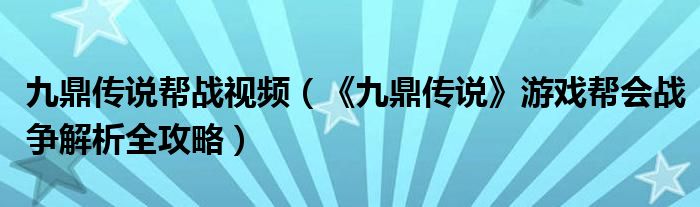 九鼎传说帮战视频(《九鼎传说》游戏帮会战争解析全攻略)