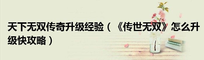 天下无双传奇升级经验(《传世无双》怎么升级快攻略)