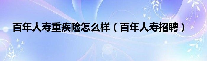 大家好,小飞来为大家解答以上的问题。百年人寿重疾险怎么样,百年人寿招聘这个很多人还不知道,现在让我们一起来看看吧!