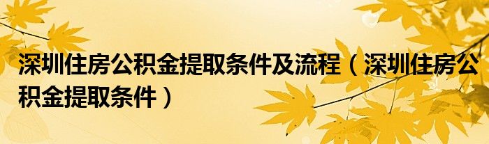 深圳住房公积金提取条件及流程(深圳住房公积金提取条件)