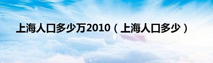 上海人口多少万2010(上海人口多少)