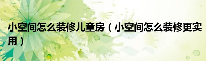 小空间怎么装修儿童房(小空间怎么装修更实用)