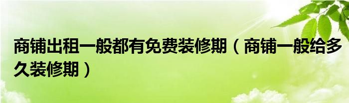 商铺出租一般都有免费装修期(商铺一般给多久装修期)