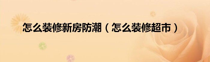 大家好,啊来为大家解答以上的问题。怎么装修新房防潮,怎么装修超市这个很多人还不知道,现在让我们一起来看看吧!