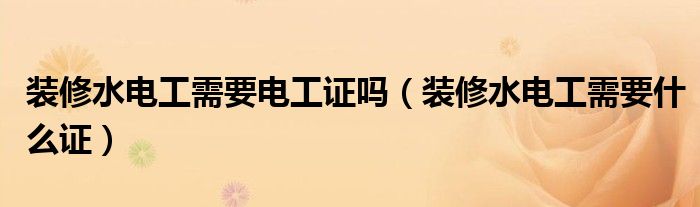 装修水电工需要电工证吗(装修水电工需要什么证)