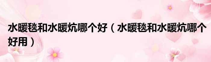 水暖毯和水暖炕哪个好(水暖毯和水暖炕哪个好用)