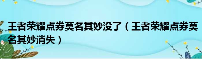王者荣耀点券莫名其妙没了(王者荣耀点券莫名其妙消失)