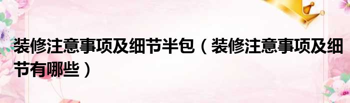 装修注意事项及细节半包(装修注意事项及细节有哪些)