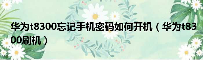 华为t8300忘记手机密码如何开机,华为t8300刷机很多人还不知道,今天乐天来为大家解答以上问题,现在让我们一起来看看吧!